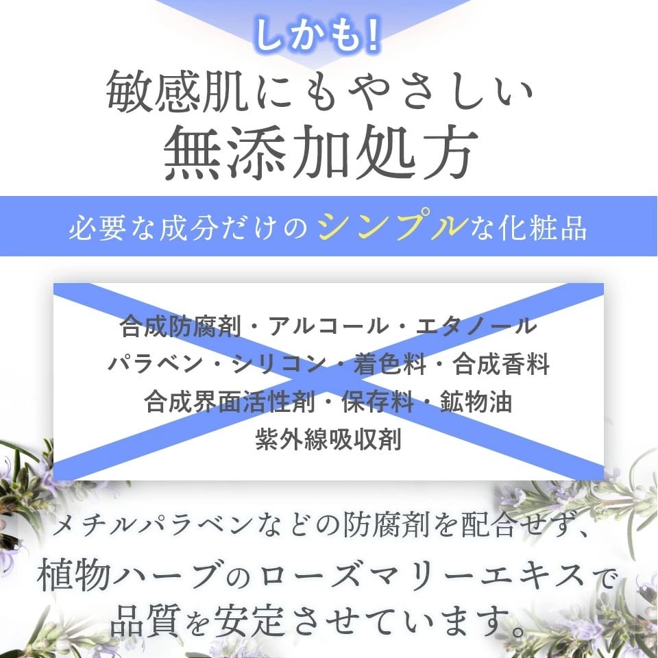 低刺激、ノンケミカルなので敏感肌の方に、また年齢肌特有のお肌のごわつきのお手入れにもお使いいただけます。さらには、美肌の湯として有名な嬉野温泉の温泉水も配合。